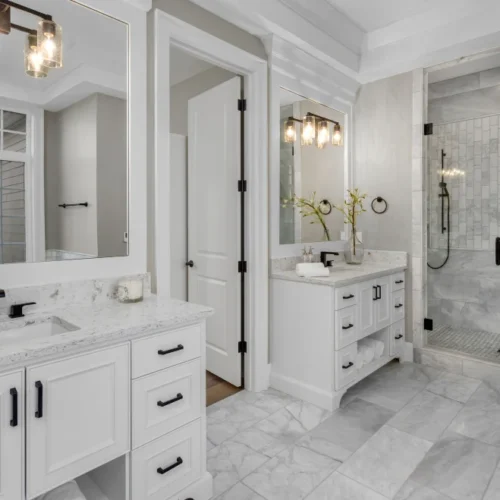 Spa-quality upgrades, new tilework, vanities, and walk-in showers.